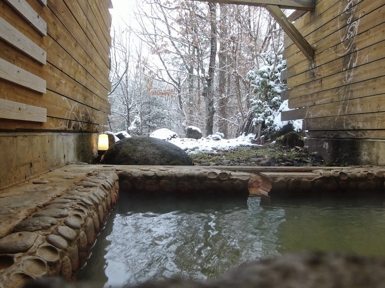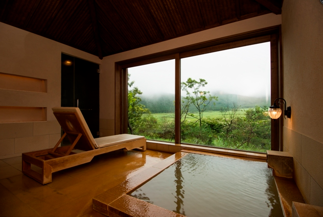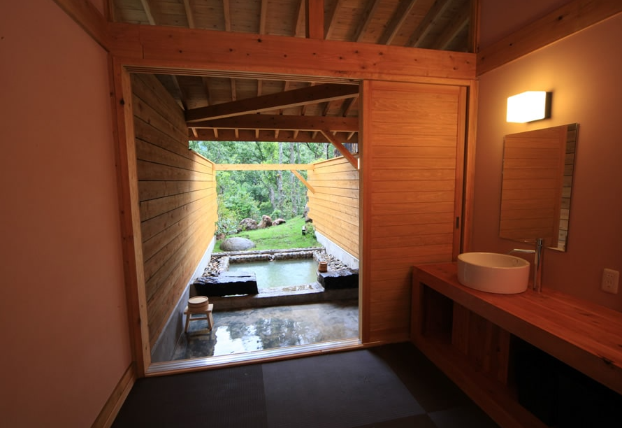우선 이 별관 객실에 딸린 노천탕의 스케일이 압도적입니다. 6명, 아니 10명도 족히 들어갈 정도의 압도적인 크기에 막힌 곳 하나 없는 고원의 풍광과 쏟아지는 밤하늘의 별을 만끽하기에 제격인 곳이기도 하니까요 저는 친구 4명과 함께 갔었는데 만족했었습니다. 여자 4명이 하하 호호 마음껏 떠들어재껴도 눈치 볼 필요 없을 정도로 완벽하게 프라이빗한 공간이었다는 것과 여느 료칸의 대욕장만큼의 크기의 전용 노천탕은 4명의 여자들이 온천을 즐기기에 더없는 공간이었답니다.