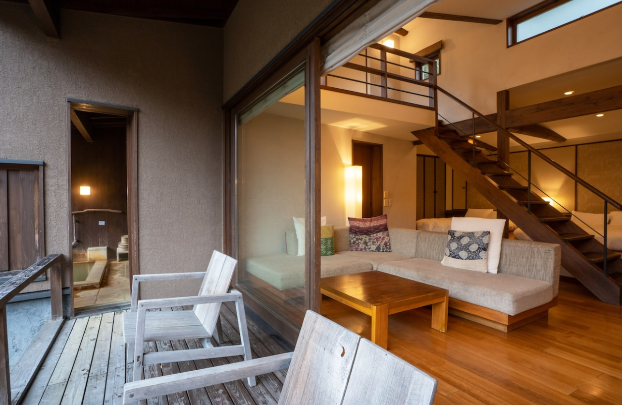 정원 5명 | 거실+일본식방+침실+테라스+다이닝룸(164㎡) | 노천탕+내탕+욕실 |