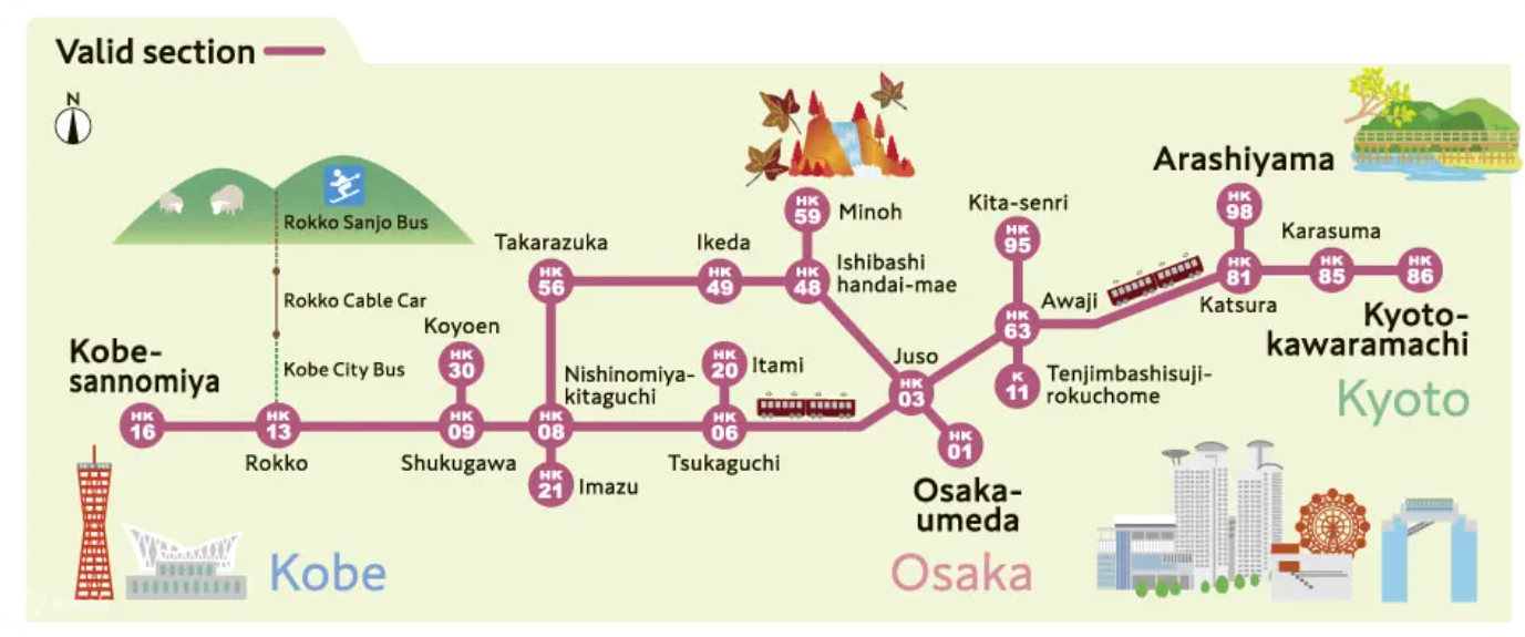 한큐 투어리스트 패스와 JR 간사이 미니패스가 있습니다.