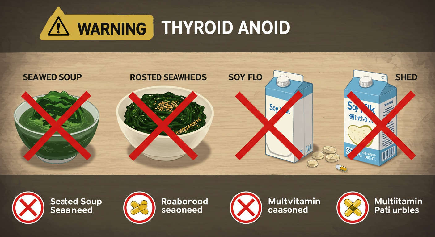 미역국, 다시마, 조미김 등 전통 식단만큼 친근한 해조류지만, 갑상선 환자에게는 요오드 과다섭취 ▶ 환한 부작용 의 위험이 있습니다. 수술 직후나 방사성 요오드 치료 전후엔 특히 해조류 섭취를 철저히 제한하세요!
