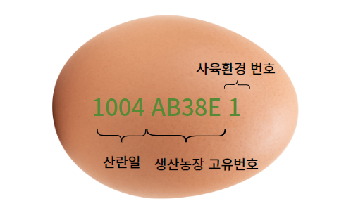위 사진 속 계란의 경우 10월 4일 생산 + AB38E 사육장 + 난각번호 1
