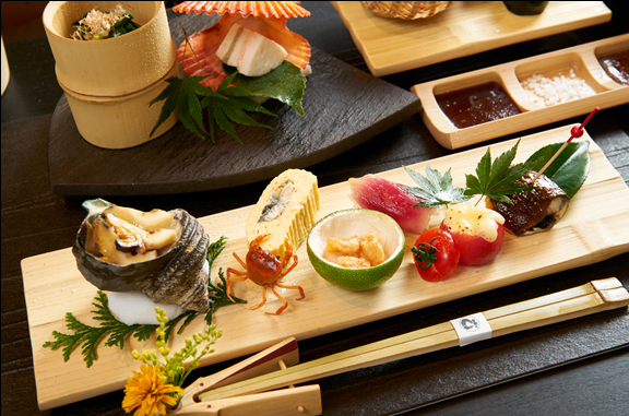 밥과 찬이 담겨오는 타케후에밖에 없는 대나무 그릇들이 가이세키의 매력에 푹 빠지게 합니다.