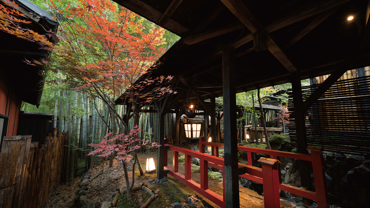 타케후에는 일본의 큐슈 지역, 쿠마모토 현의 쿠로가와라는 매력적인 온천 도시에 위치한 료칸입니다.