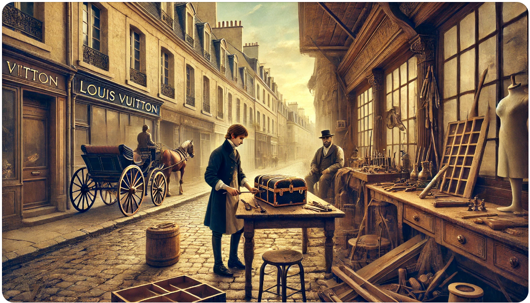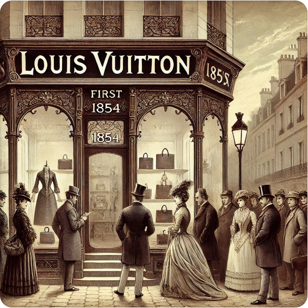 1854년, 루이 비통은 파리의 중심지에 자신의 첫 번재 가방 상점을 열었습니다.