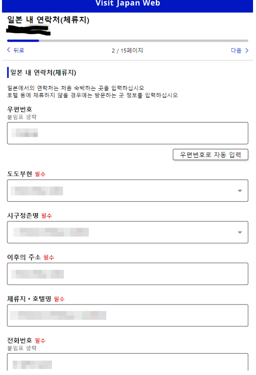 일본 내 연락처는 일본 여행 시 호텔 숙소의 주소와 연락처를 적어 넣으시면 됩니다.