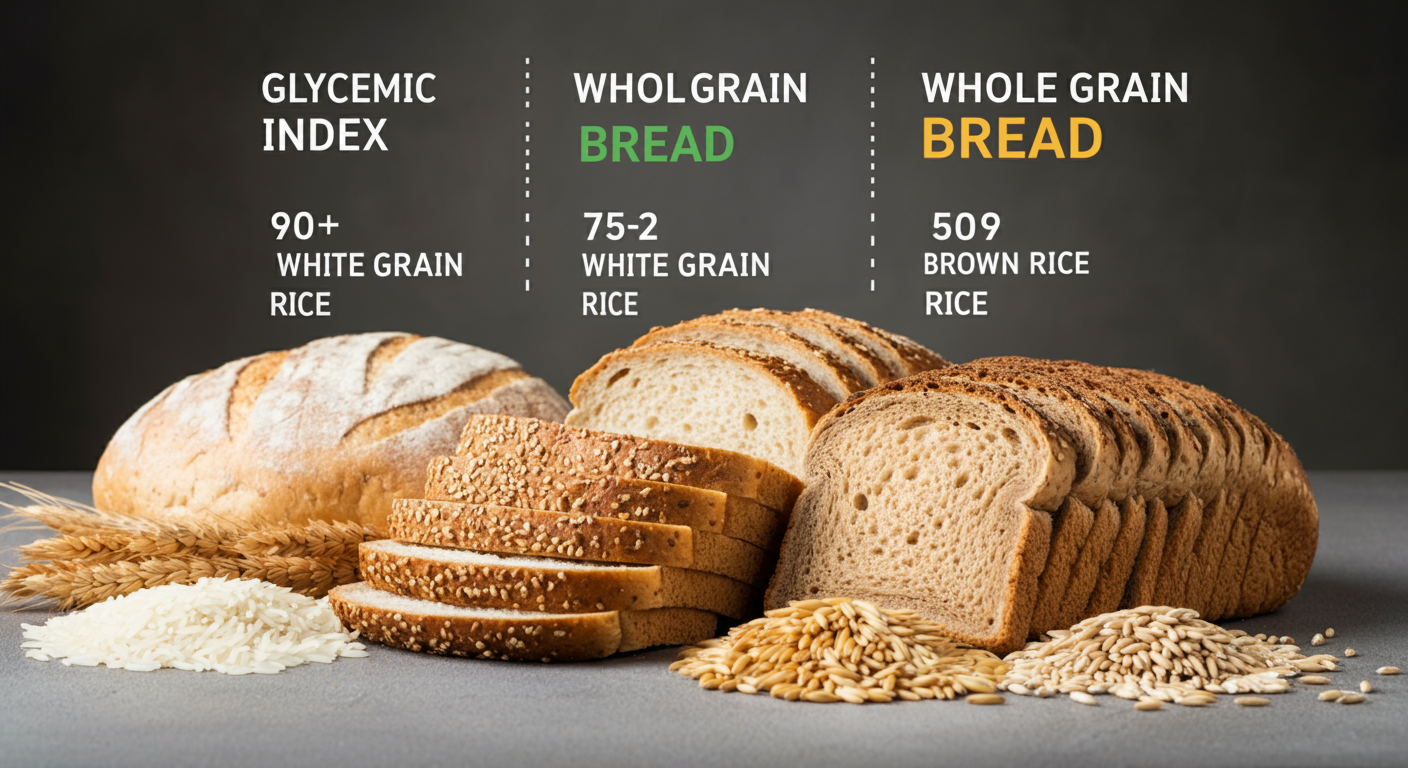 통밀빵의 혈당 지수는 약 50대로, 정제 밀가루 빵(90 이상)보다 훨씬 낮습니다. 이는 식이섬유가 혈당 상승을 억제하기 때문입니다.