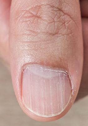 영양 부족일 경우 손톱에 얇고 연한 세로줄무니가 생길 수 있어요.
