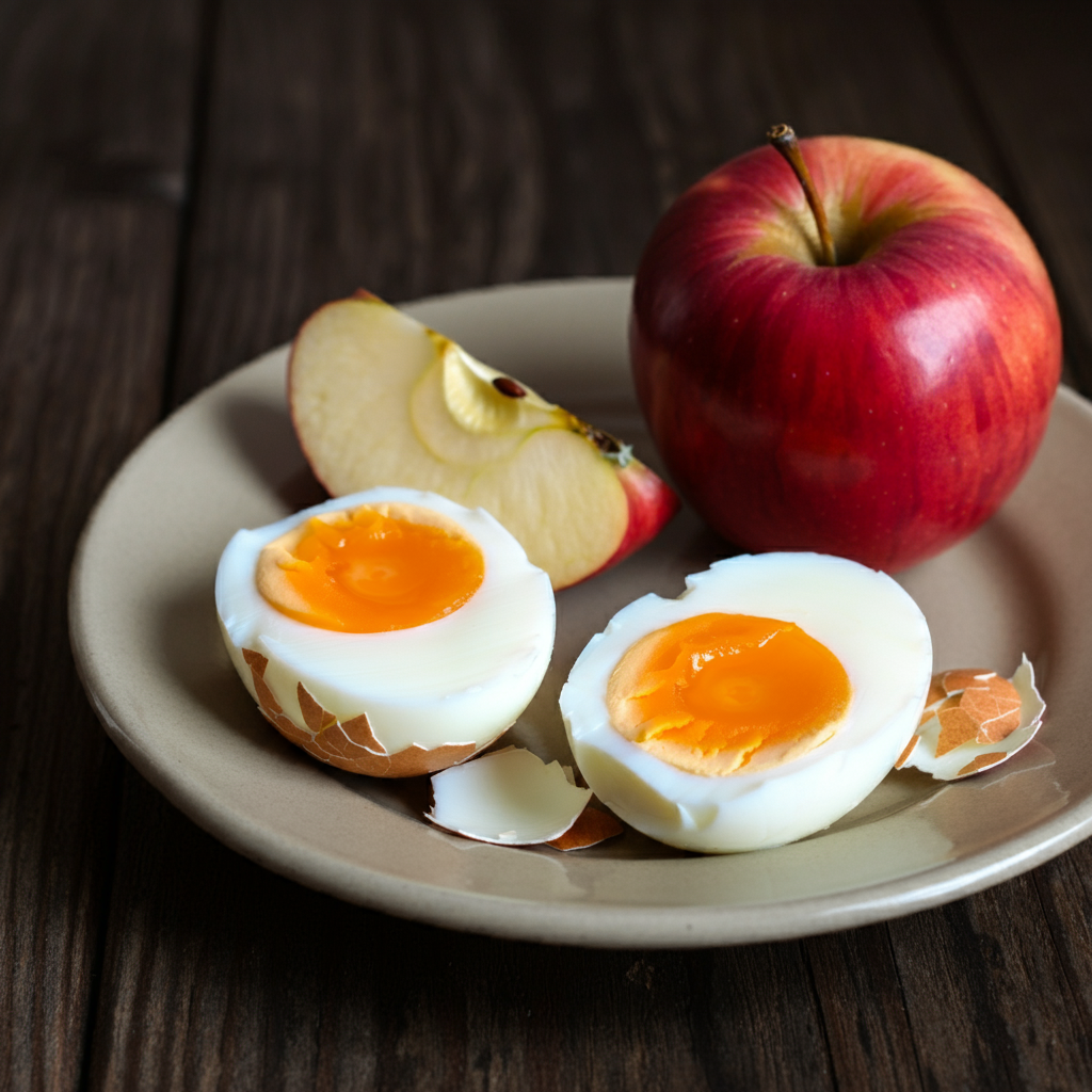 • 미리 삶아 둔 계란 두 개와 사과 한 개만으로도 건강한 아침 식사를 완성할 수 있어요. 간단하지만 단백질과 비타민 C를 함께 섭취할 수 있는 훌륭한 메뉴입니다.
