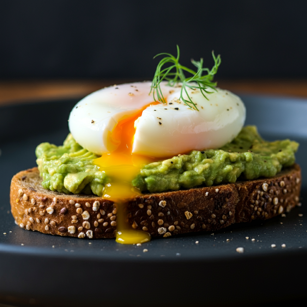 • 통곡물 빵 위에 아보카도를 얇게 펴 바르고, 반숙 계란을 올려드세요. 건강한 지방과 단백질이 풍부해서 아침 에너지를 충분히 제공합니다.