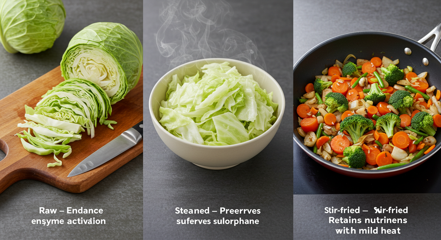 양배추 속 설포라판은 열에 약한 성분이라 강한 불로 오래 익히면 효과가 줄어듭니다