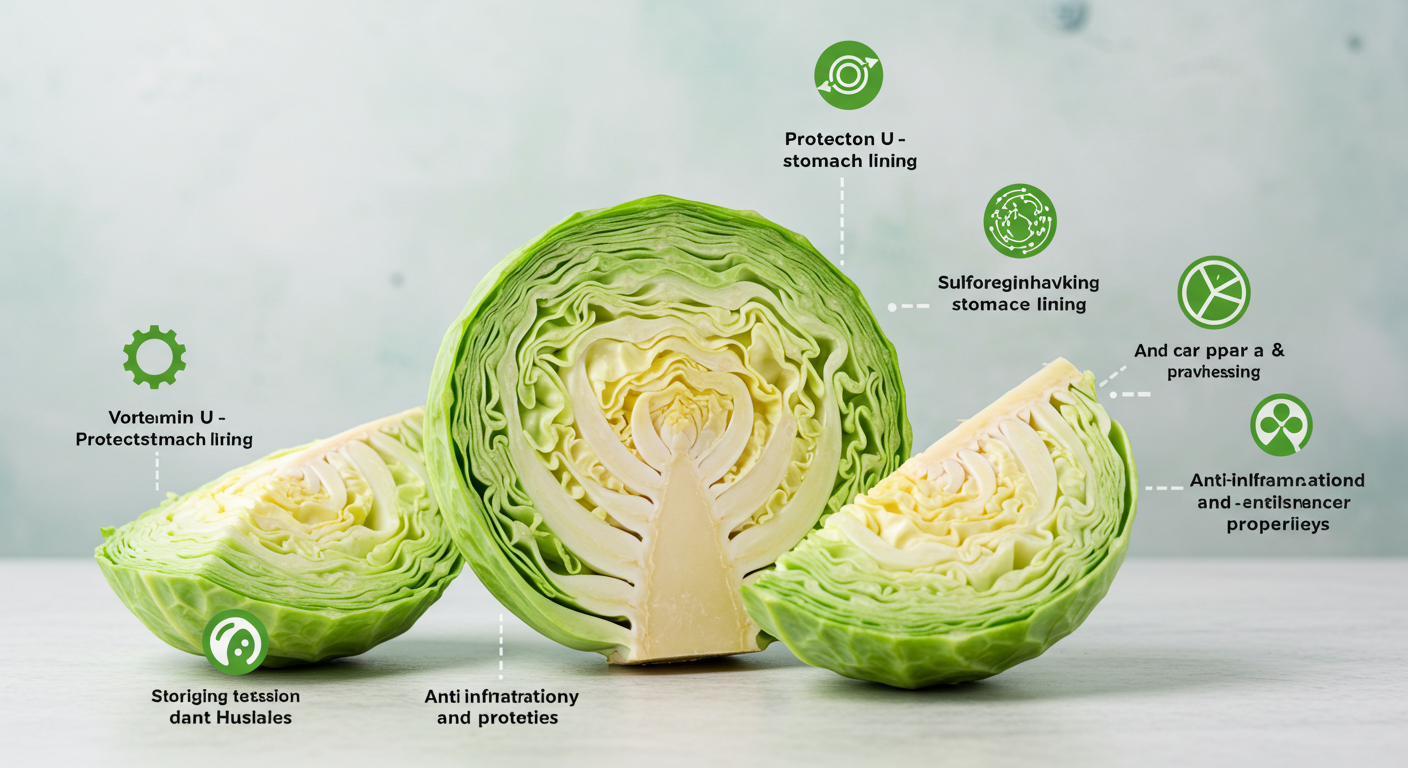 양배추가 건강에 좋은 이유는 바로 비타민 U와 설포라판이라는 두 가지 강력한 성분 덕분이에요