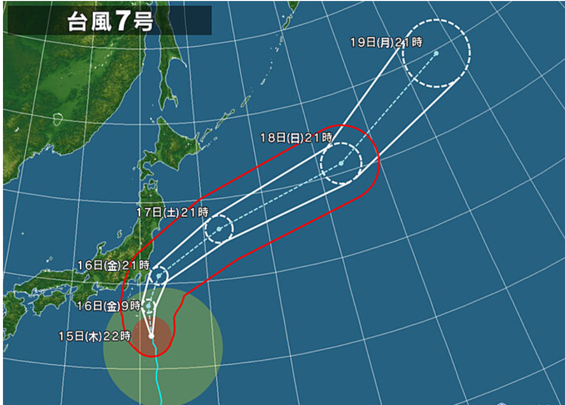 밤에 걸쳐 일본의 남쪽에서 태풍 제 7호가 북상할 전망입니다.