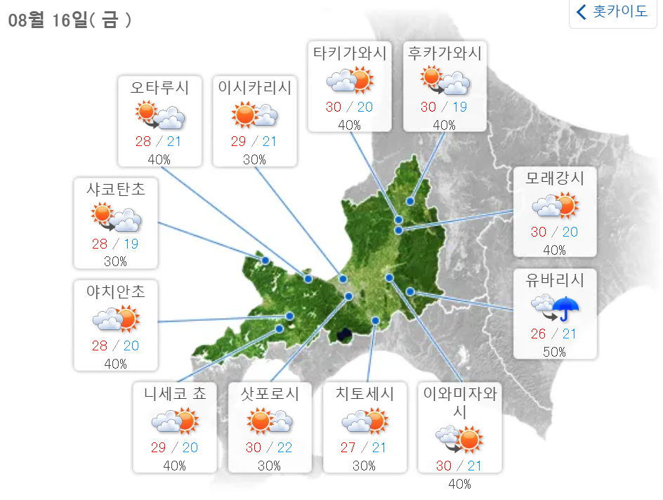 오늘의 북해도(홋카이도) 날씨 - 0816