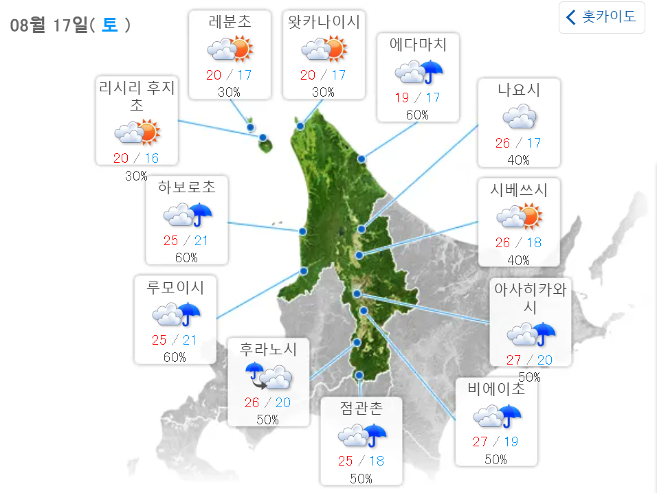 오늘의 북해도(홋카이도) 날씨 - 0816 (0) | 2024.08.16 |