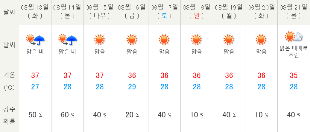 여름철 기후 특성상 갑작스러운 소나기가 내릴 가능성도 있으니