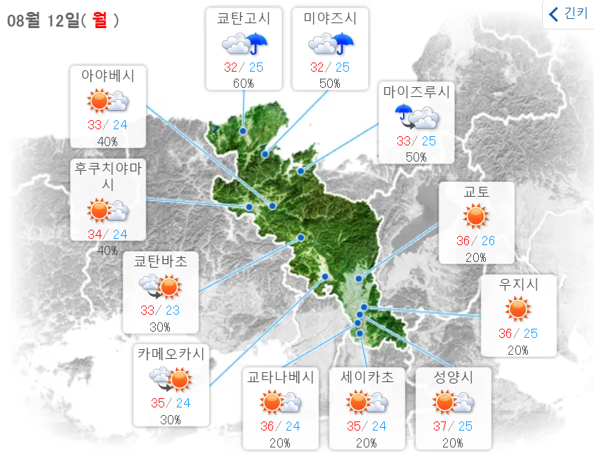 오사카부 날씨 예보 (8월 11일) (0) | 2024.08.11 |
