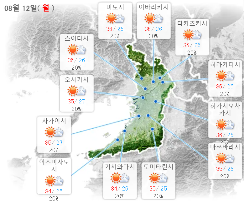 오늘의 오사카 날씨 (매일 업데이트 : 0815) (0) | 2024.08.15 |