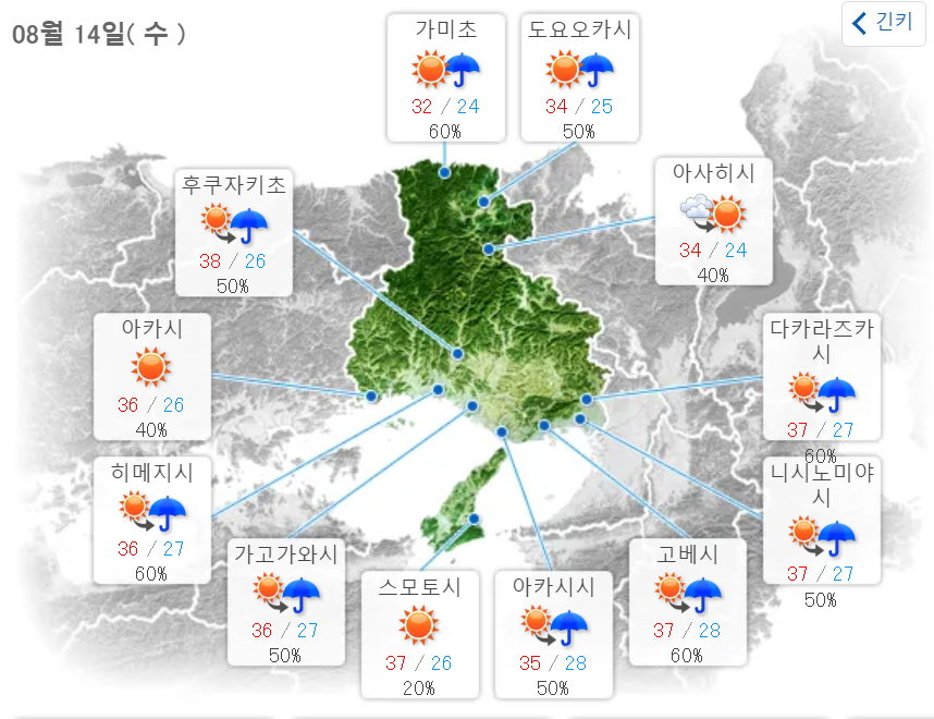 오사카부 날씨 예보 (8월 11일) (0) | 2024.08.11 |