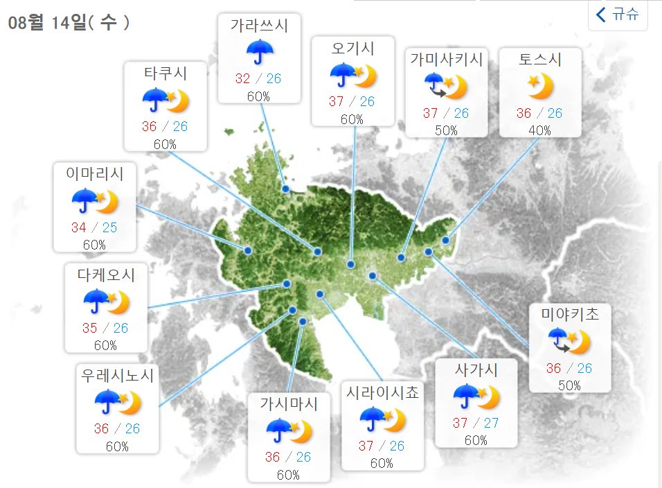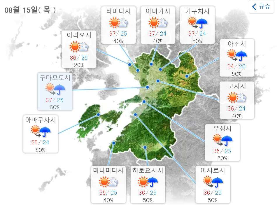 오늘의 후쿠오카 (규슈) 날씨 - 0816 (0) | 2024.08.16 |