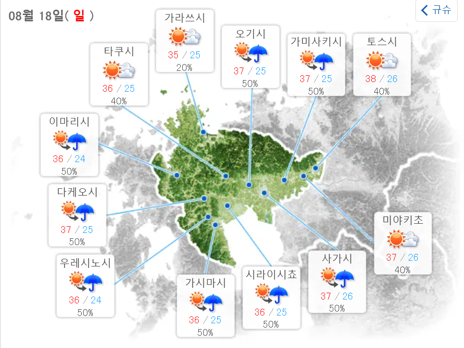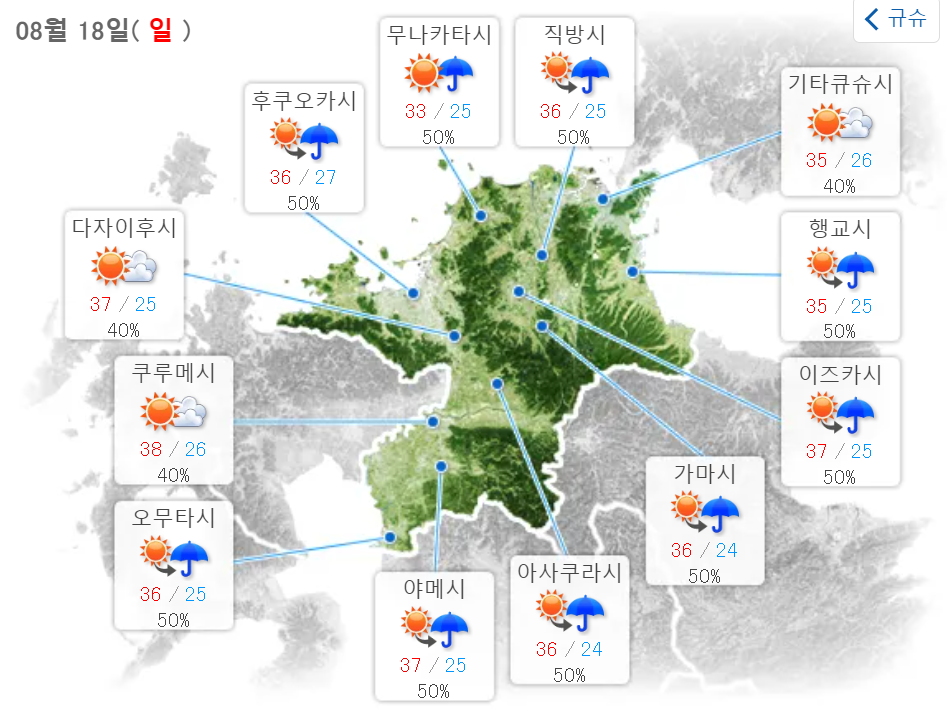 2024년 8월 18일 일요일의 후쿠오카 현은
