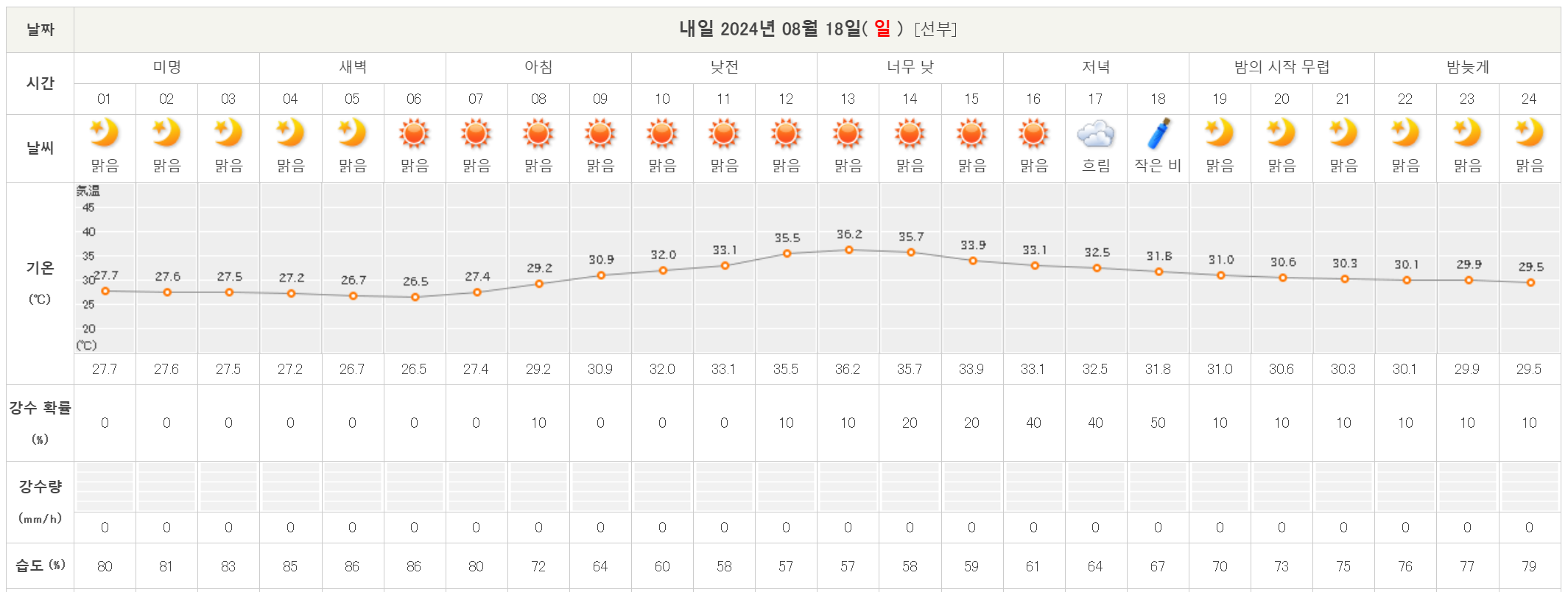 이 날의 기온은 최고 36℃에 달할 것으로 예상되며,
