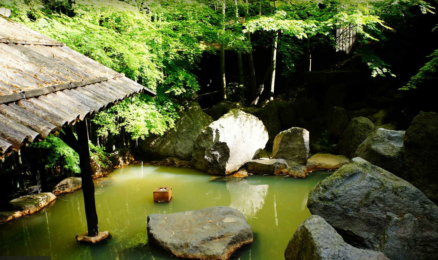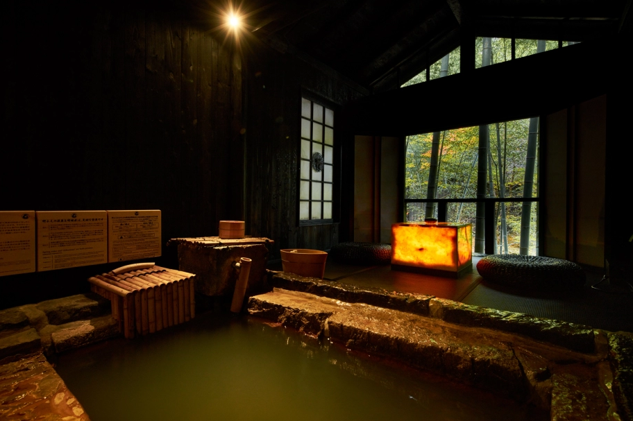 료칸의 온천탕은 객실전용으로 사용할 수 있는 객실 노천탕( 露天風呂付き客室 :로텐부로츠키객실), 객실 전용 실내탕, 가족탕또는 전세탕, 대욕장이 있습니다.