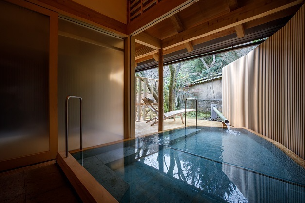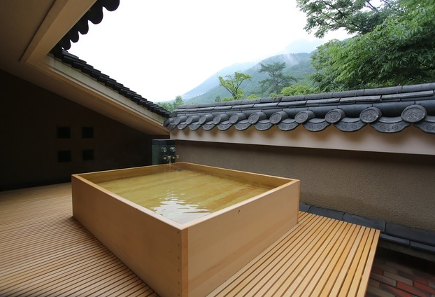 유후다케를 바라보는 전용 발코니에 노천탕이 설치되어 있습니다.