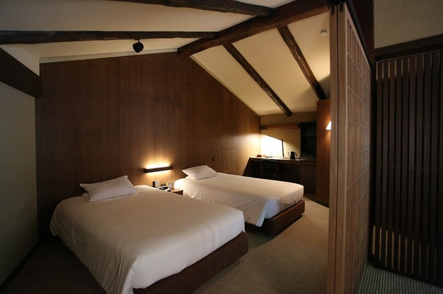 | 객실 크기 120㎡ (금연실) | 다다미 6조 + 거실 + 침실(트윈) + 다락방 + 실내탕 + 노천탕 + 전용 정원 |
