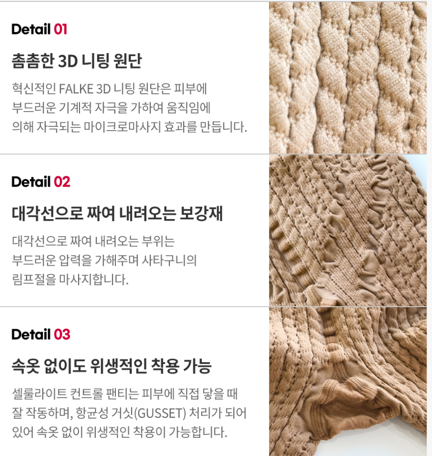 슬리밍 효과 : 대각선으로 짜여 내려오는 부위가 사타구니에 있는 림프선을 부드럽게 마사지