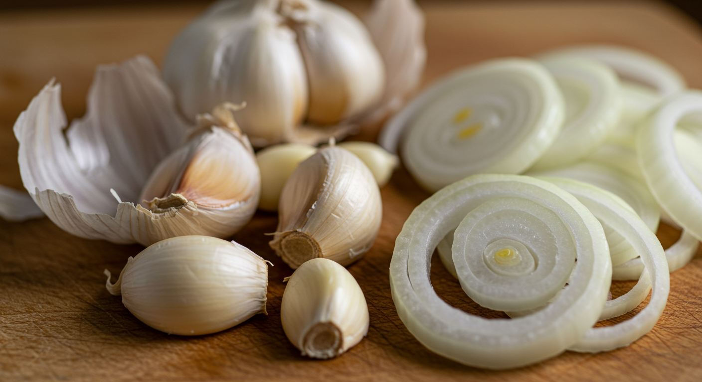 마늘과 양파는 건강에 좋지만 자극적인 성분이 위산을 자극해 속 쓰림을 유발할 수 있어요.