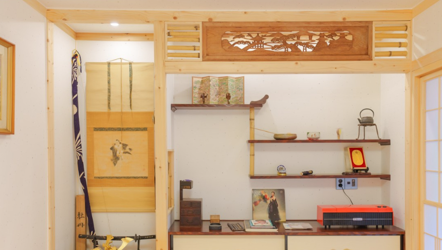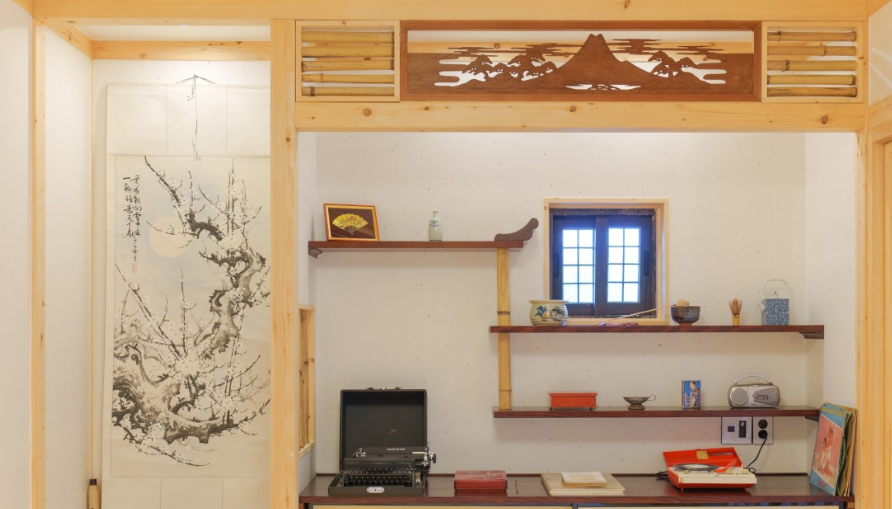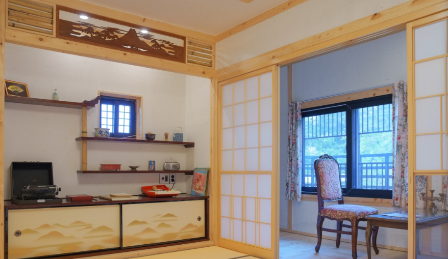 고풍스러운 일본 가정의 포근한 방으로 오래된 소품들이 전시되어있는 방입니다.