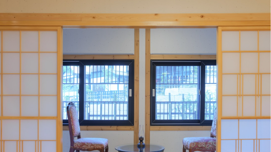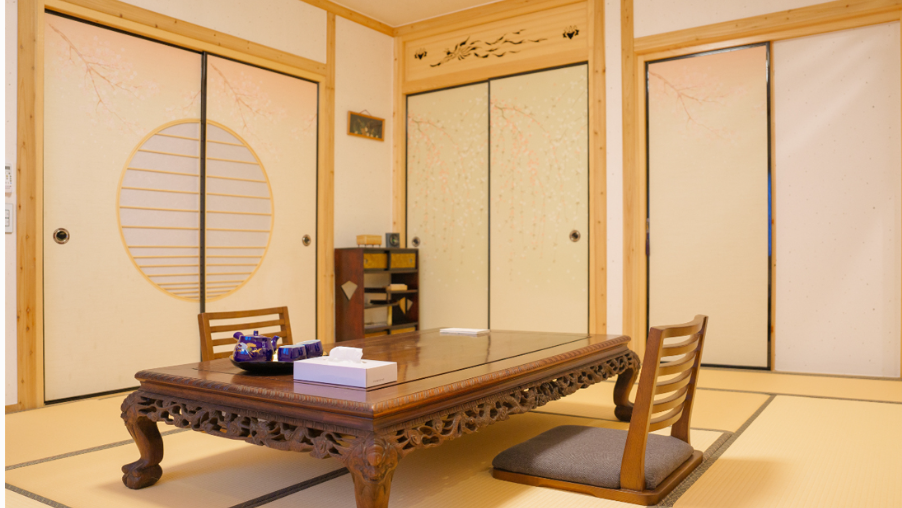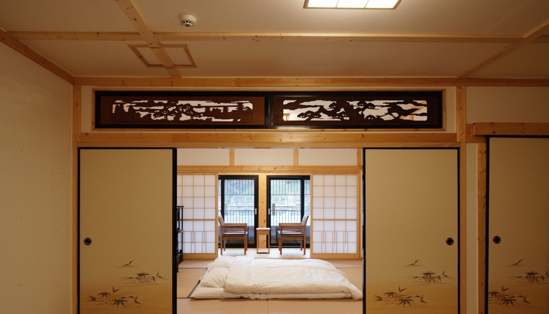 료칸은 모두 3개의 동으로 나뉘어 있으며 동마다 4개의 객실로 총 12개의 객실이 있습니다.
