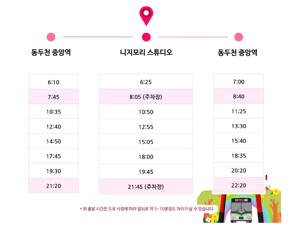 니지모리 스튜디오는 서울에서 약 1시간 거리인 경기도 동두천에 위치해 있습니다.