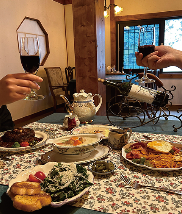 료칸 레스토랑 디너는 예약제로 운영되며 클래식한 분위기에서 식사를 제공합니다.