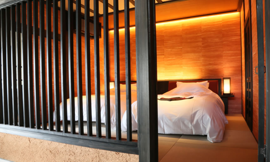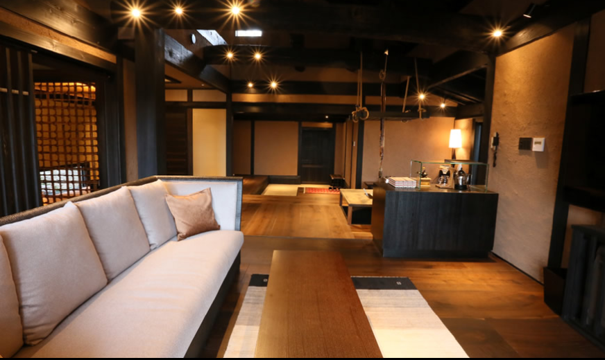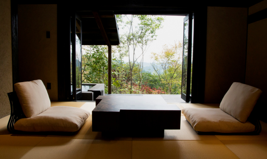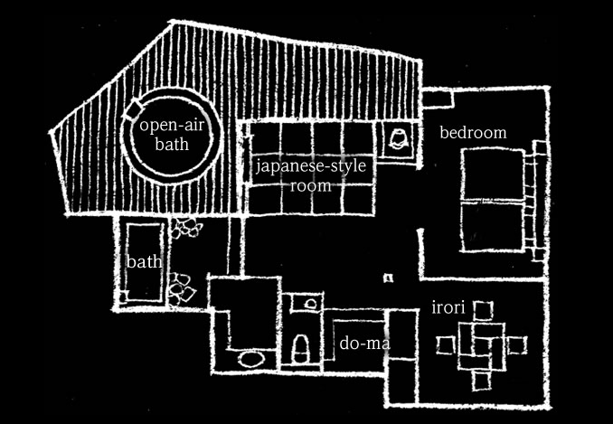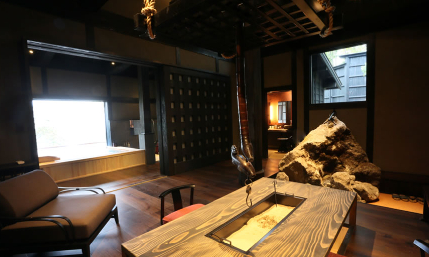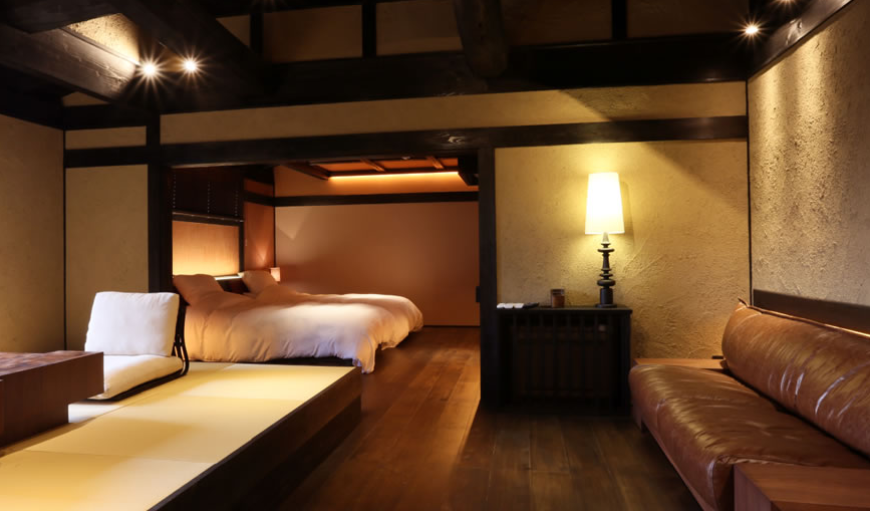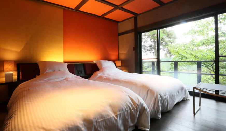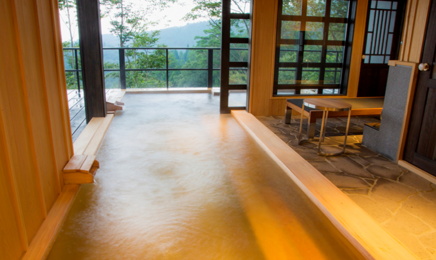 산들과 나무들에 둘러쌓여 프라이버시가 보장된 사치스러운 별장풍 구조의 료칸으로 모든 객실엔 원천에서 천연 온천수가 끊임없이 흘러내리는 실내 온천탕과 우드 테라스가 시공된 노천탕이 딸려있습니다.