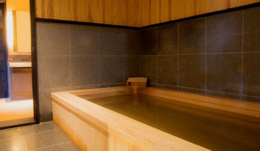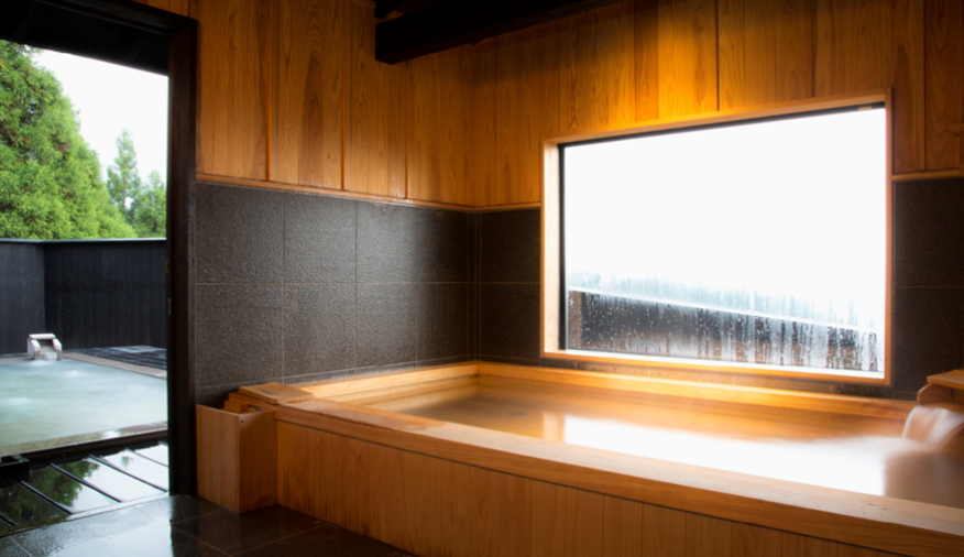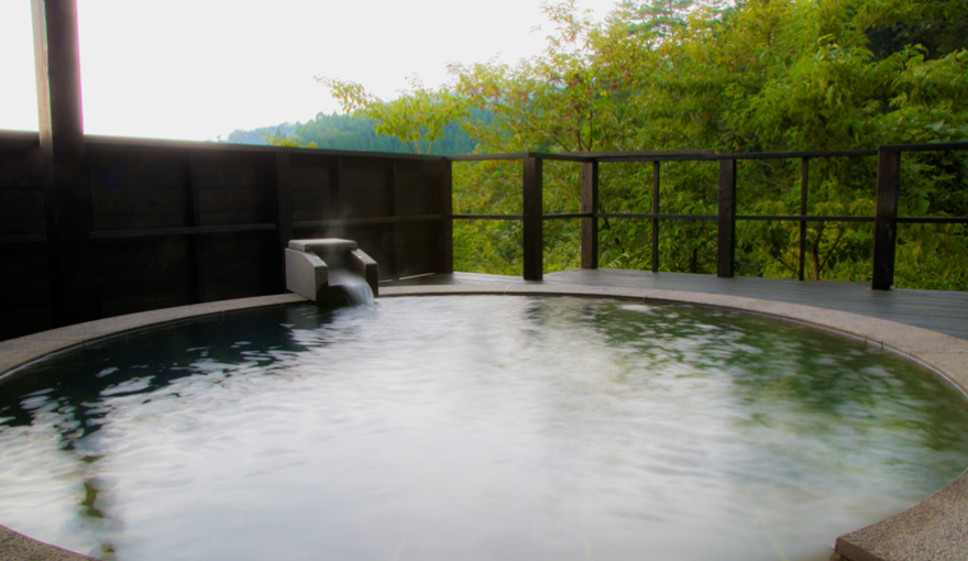 널찍한 우드 테라가스 펼쳐진 노천탕은 신록에 둘러싸여 유유자적한 온천을 누리기에 적합한 객실입니다.