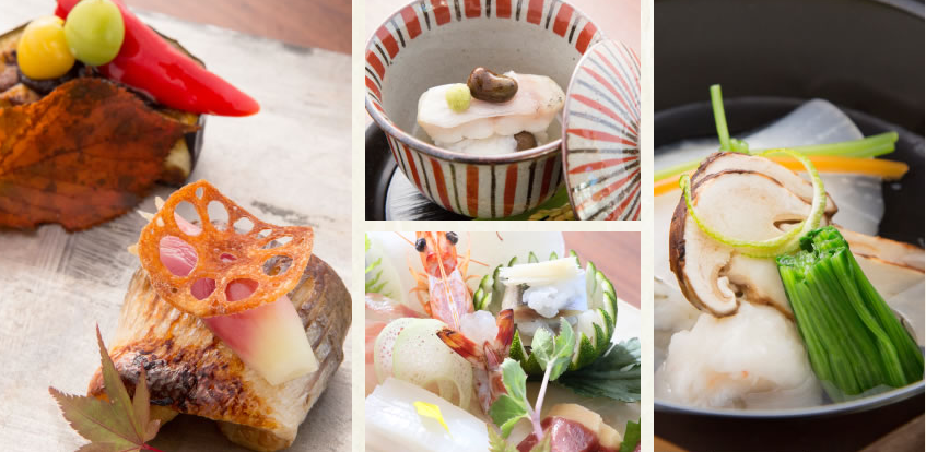 구마모토현의 건강하고 신선한 재료들을 이용해서 차려진 가이세키 코스는 계절에 따라 메뉴가 변경되고 있지만.
