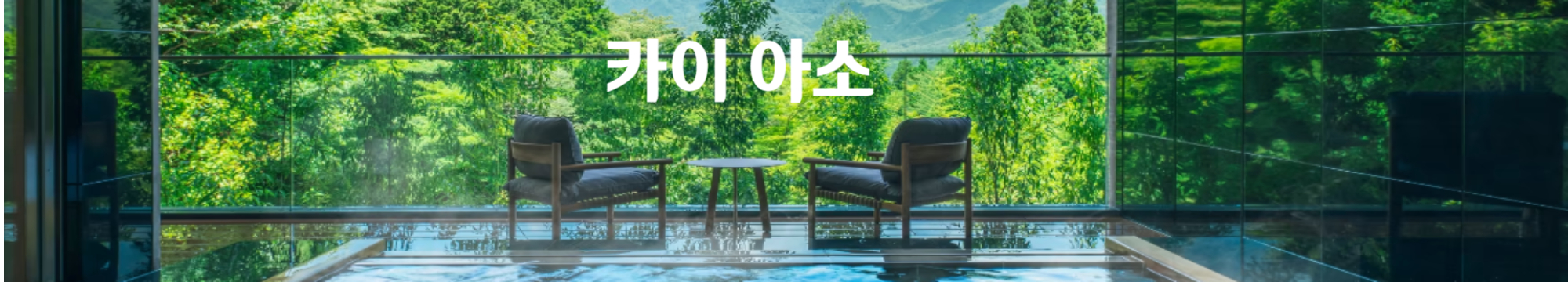 일본 고급 료칸 브랜드 호시노 리조트의 계열인 「카이 아소」는 유네스코 글로벌 지오파크 중 하나인 아소 쿠주 국립공원 안에 새워진 리조트형 온천 료칸입니다.