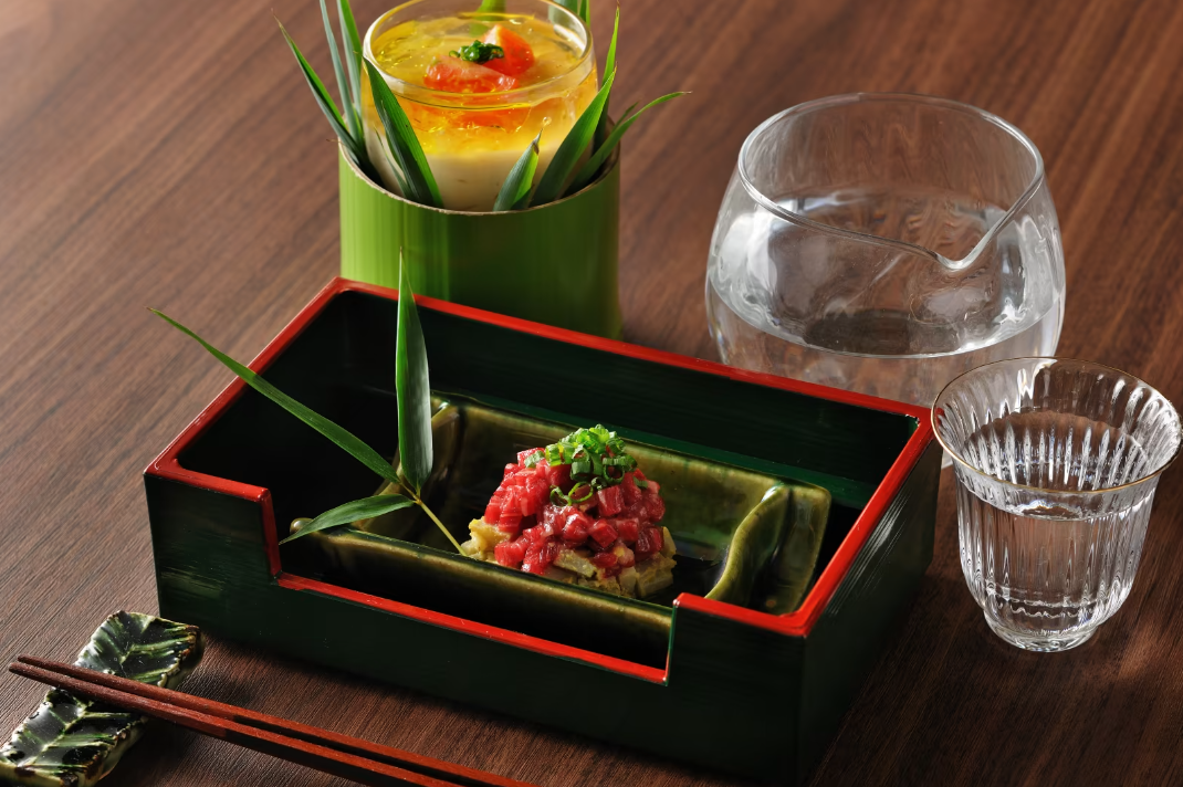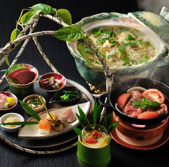 규슈 지역의 신선한 재료들을 엄선하여 만들어내는 저녁식사를 한껏 즐기고 나면 로비에 있는 테이블에서 디저트를 즐기게 됩니다. 겨울에는 로비에 화로가 켜져 있어서 따뜻한 분위기를 내어 디저트나 티를 즐기기에 안성맞춤이겠죠