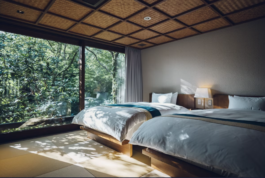 기간마다 조금씩 다르긴 하지만 료칸 사이트에서 하시는 것보다 호텔스닷컴이나 트립닷컴. 익스피디아등에서 예약을 하시는 것이 조금 더 저렴하기 때문에 그때그때 검사해 보시는 것을 추천드립니다.