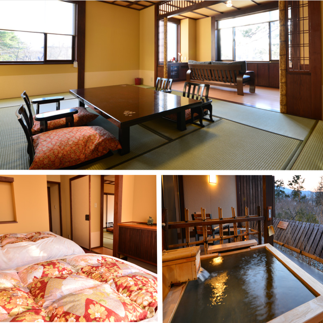 유라쿠소안처럼 리조트 형 료칸으로 다양한 편의 시설이 갖춰져 있고 객실은 널찍한 편이며 온천은 계곡이 내려다보이는 노천탕과 실내탕이 마련되어 있고 예약 시 이용 가능한 전세탕도 있습니다.