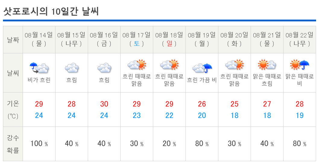 오늘(0814) 의 북해도 날씨 : 일본 여행자 필수! (매일 업데이트) (0) | 2024.08.14 |