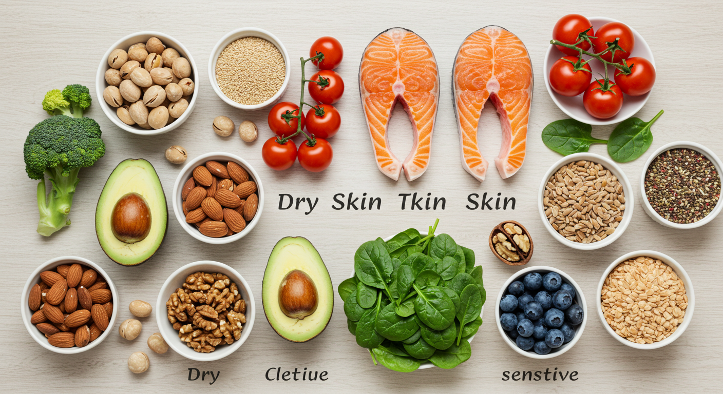 지금부터는 피부 타입별로 어떤 음식을 챙겨 먹어야 하는지, 또 어떤 조합이 좋은지 하나씩 알려드릴게요.