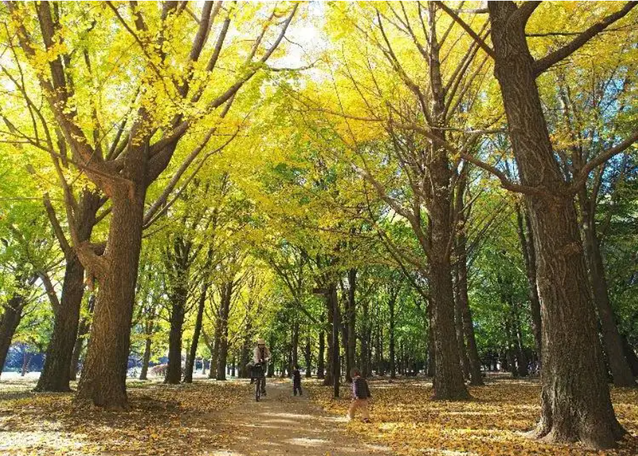 국영 쇼와 기념 공원은 노란 잎의 은행나무 명소로 유명한 곳이에요.